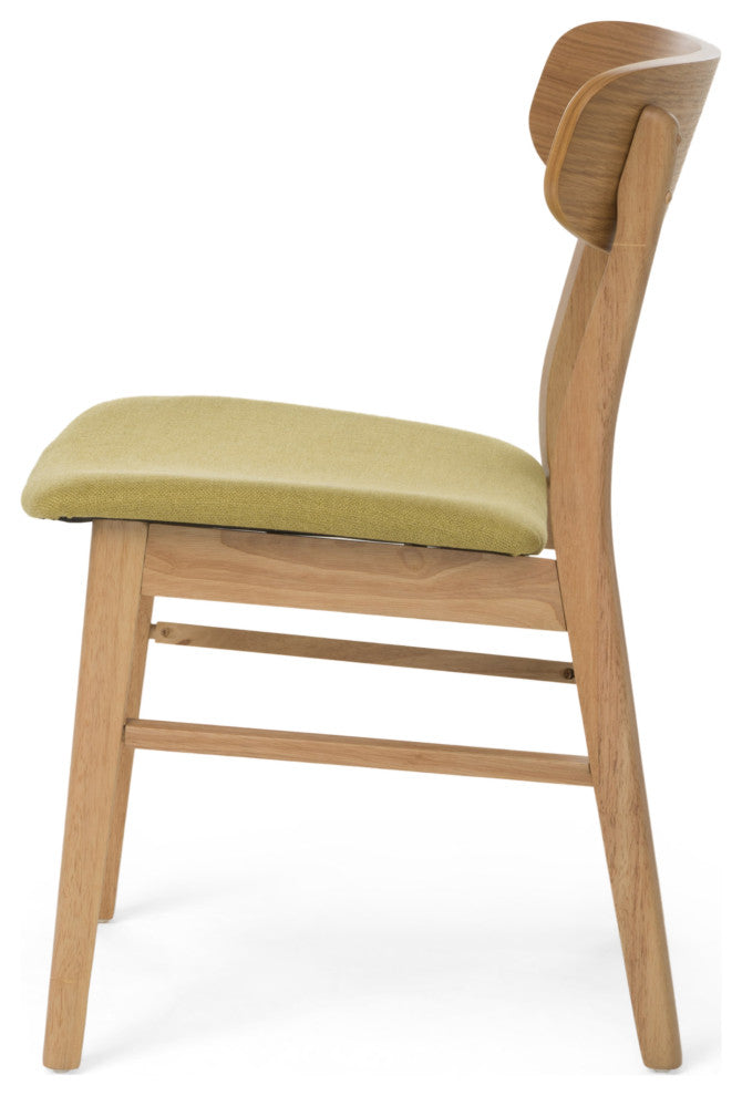 With matching wood finishes, you can''t go wrong with this dining set. Including one table and four chairs, this set is ideal for any home. The mid-century style and smooth wood finishes of this set will compliment any decor, so you don''t have to worry about clashing color pallets in your home. The dining chairs feature a sturdy design with soft fabric cushioned seats, providing both comfort and style for your dining pleasure. Features:Includes: One (1) Table and Four (4) ChairsTable Material: Medium Density Fiberboard with a Walnut VeneerTable and Chair Leg Material: RubberwoodChair Material: FabricTable Finish: Natural OakChair Fabroc Color available in: Green Tea, Light Beige, or Dark GrayChair Leg Finish: Natural OakAssembly RequiredTable Dimensions: 35.43"D x 59.06"W x 29.53"HChair Dimensions: 21.26"D x 18.50"W x 30.71"HSeat Depth: 17.50"Seat Width: 17.00"Seat Height: 18.00"
