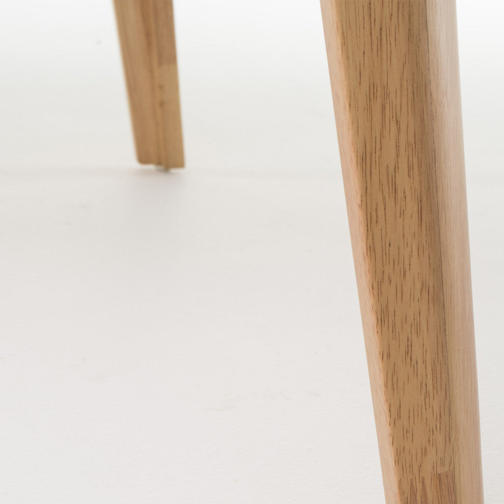 With matching wood finishes, you can''t go wrong with this dining set. Including one table and four chairs, this set is ideal for any home. The mid-century style and smooth wood finishes of this set will complement any decor, making this a perfect addition for your interior space. The dining chairs feature a sturdy design with lovely upholstered seats that provide both comfort and style for your dining pleasure. Whether you are hosting a casual dinner with friends or dining with your family, this set will make every meal a memorable one. MID-CENTURY DESIGN: Blending together iconic splayed legs with a stunning wood frame, our dining set offers a mid-century look to your lounge space. With its clean lines and understated look, this set uses new materials to reimagine a traditional design. RUBBERWOOD LEGS: Our environmentally-friendly wood not only offers plenty of durability, but it also gives this piece a beautiful natural-grain look. Combined with a gorgeous finish, this wood will truly stand out in any room.UPHOLSTERED SEATING: These chairs offer beautifully upholstered seating, giving any room a refined appearance. This provides a smooth, immaculate texture for this piece as well as a splash of color for the overall set. RECTANGULAR TABLE: This set includes a rectangular table that comfortably seats four people. This has dimensions of 47.20" W x 29.50" D x 29.50" H, allowing enough space for you and your hearty meals.ASSEMBLY REQUIRED: Some assembly is required for this dining set. All of the instructions and tools needed for assembly are included. Please note that this set is not for commercial use. Includes: One (1) Table and Four (4) ChairsTabletop Material: Faux Wood with Oak VeneerTable and Chair Leg Material: RubberwoodSeat Material: FabricFabric Composition: 100% PolyesterFinish: Natural OakSeat Color: Dark GrayHand-Crafted DetailsAssembly RequiredTable Dimensions: 29.53 inches deep x 47.24 inches wide x 29.53 inches highChair Dimensions: 19.60 inches deep x 20.60 inches wide x 30.80 inches highSeat Dimensions: 17.60 inches deep x 16.60 inches wide x 18.00 inches high