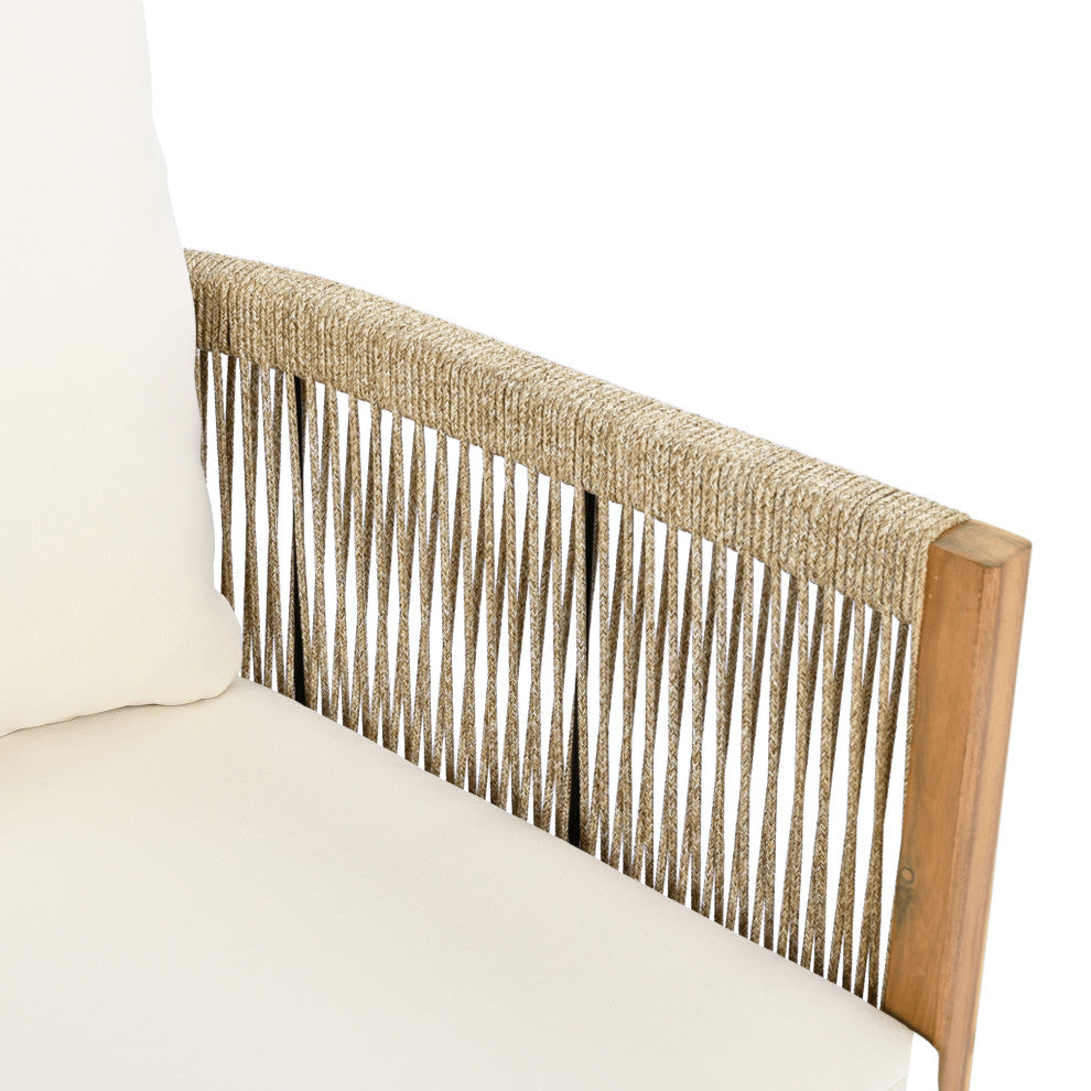 Premium Acacia Wood Durability: Crafted from high-quality acacia wood, this patio club chair offers a sleek and exotic aesthetic while ensuring remarkable durability. Resistant to outdoor elements, the hardwood frame maintains its beauty without darkening over time, making it an ideal choice for long-lasting outdoor furniture that stands up to wear and tear.• Rustic Crosswoven Rope Accents: Adorned with intricately woven rope detailing on the sides, this club chair introduces a charming rustic element to your outdoor space. The thoughtful design enhances the visual appeal of the chair, making it a stylish addition that complements any outdoor setting while promoting a cozy atmosphere.• Ergonomic Tub Design: The chair features a unique semi-circular back that seamlessly blends into the armrests, providing ergonomic support and comfort. This innovative tub design not only enhances the overall seating experience but also adds a modern touch to your patio, garden, or balcony decor.• Comfortable Water-Repellent Cushions: Experience superior comfort with thick 6-inch seat cushions and 8-inch back cushions made from high-resilience sponge. The cushions are covered with a water-repellent, non-porous material, allowing for easy cleaning of spills. Zippered covers provide hassle-free maintenance, ensuring your seating remains fresh and inviting.• Easy Assembly & Dimensions: With overall dimensions of 27.75" W x 29.75" D x 25.00" H, this club chair is the perfect size for any outdoor area. Assembly is straightforward with included instructions and accessories; simply align the screw holes and secure them for a sturdy finish. Transform your outdoor space effortlessly with this stylish and functional chair.• Includes: One (1) Club ChairMaterial: Acacia Wood + Water Repellent Fabric + Rope + FoamColor: Multiple OptionsAssembly RequiredDimensions: 27.75 inches wide x 29.75 inches deep x 25.00 inches high