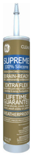 GE M90016 Window & Door Supreme Silicone Sealant, Clear, 9 Oz