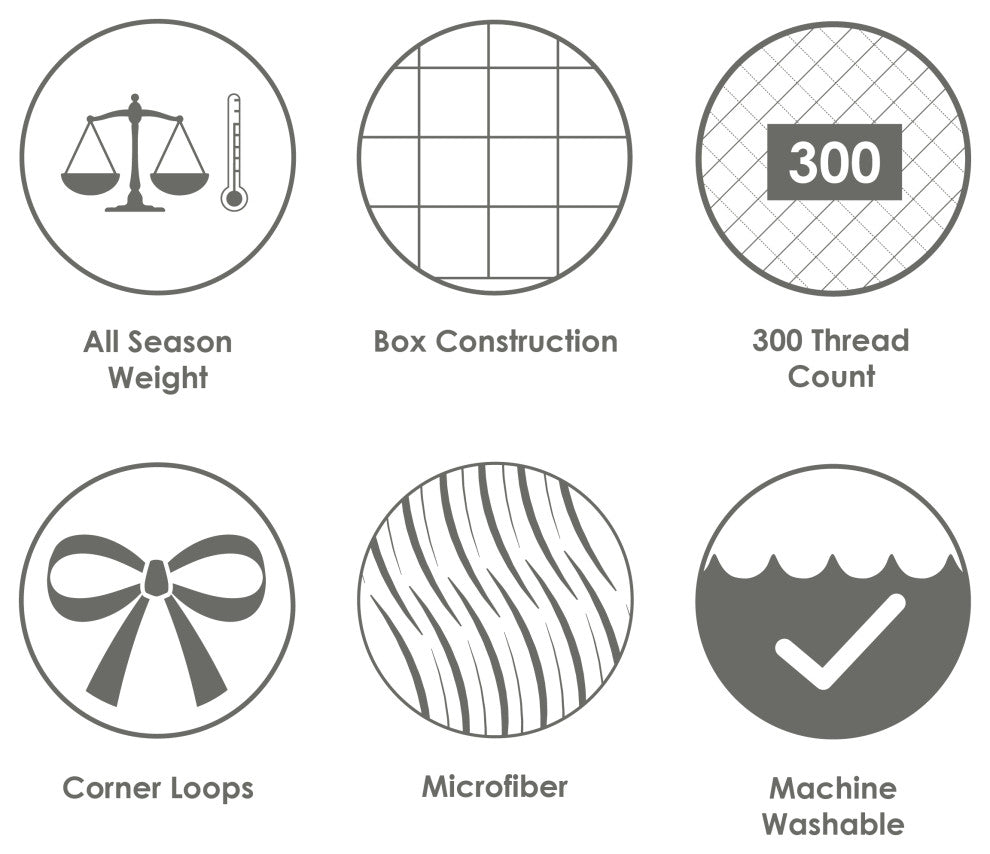 Corner Loops: Loops on all 4 corners to tie and anchor the Comforter in place