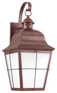 The Generation Lighting Lighting Chatham one light outdoor wall fixture in weathered copper creates a warm and inviting welcome presentation for your home''s exterior. The Chatham collection reflects a New England simplicity with clear seeded glass, that creates a timeless design. Chatham fixtures are available in Energy star qualified versions for savings on utility costs and the environment.