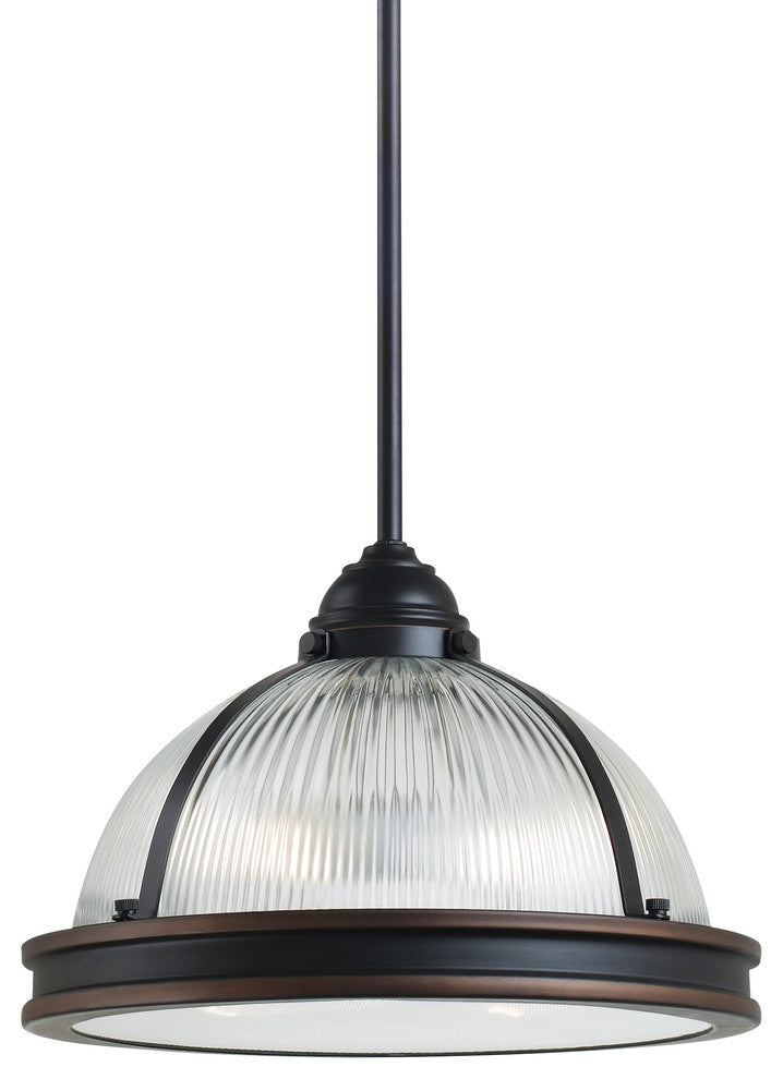 Blubs Not IncludedThe Generation Lighting Lighting Pratt Street Prismatic two light indoor pendant in autumn bronze provides abundant light to your home, while adding style and interest. Inspired by industrial lighting, these hard-working, large-scale pendants put light where you need it, while making a significant design statement. Pratt Street is offered in a choice of Prismatic Glass or Machine-Shaped Metal styles. Fully enclosed, a prismatic diffusor spreads light output evenly and alleviates glare.-Featured in the decorative Pratt Street Prismatic collection clear textured glass diffuser and clear ribbed glass shade-Three 12" stems and one 6" stem included for adjustable mounting heights.-Easily converts to LED with optional replacement lamps-UL listed for damp locations-Supplied with 6 feet of wire