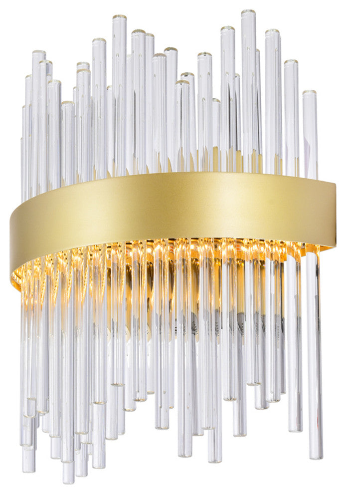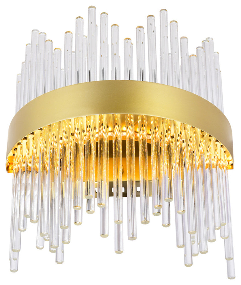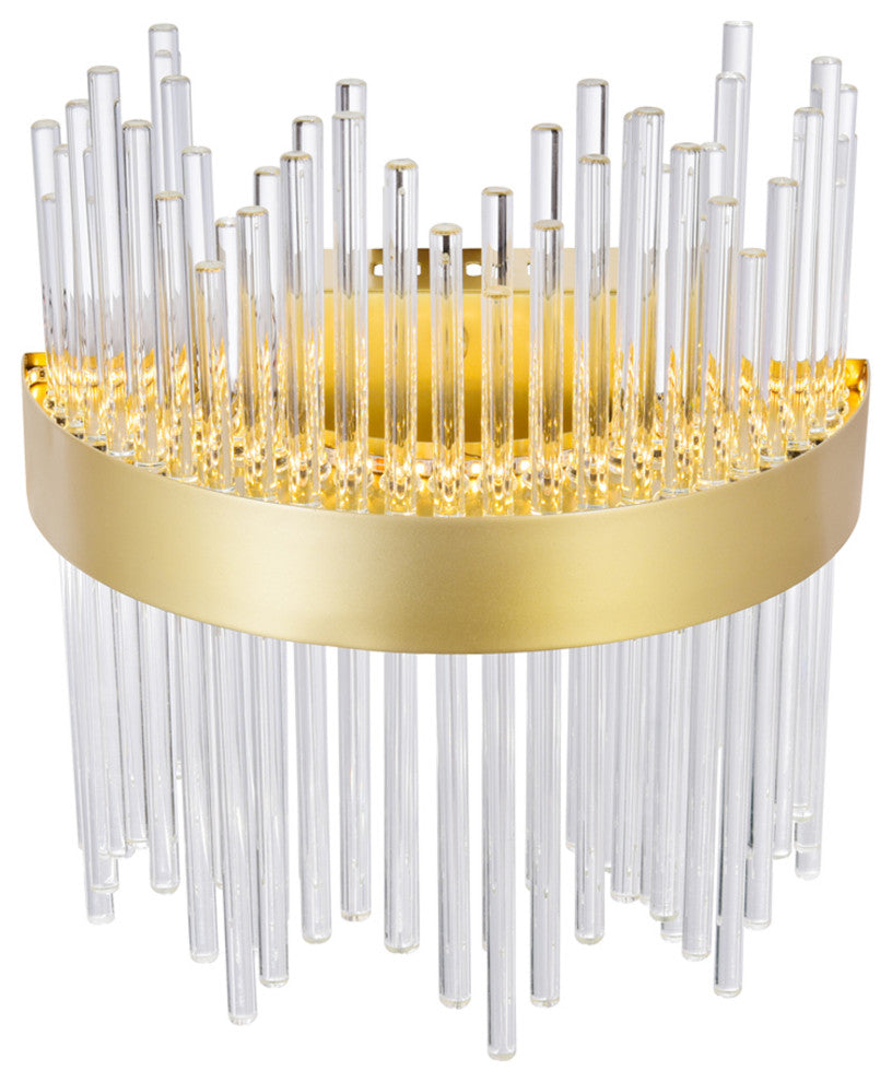 Not only will your space be illuminated, your home''s appeal will also be elevated by this Genevieve 12 inch LED Wall Sconce. This light fixture is designed with several clear crystal tubes in different heights held by a half-circle metal frame in medallion gold finish. Install a pair of this lighting option in the bedroom for a romantic ambiance or in your gallery wall in the hallway to draw eyes directly to your favorite art piece. Feel confident with your purchase and rest assured. This fixture comes with a three years warranty against manufacturers defects to give you peace of mind that your product will be in perfect condition.