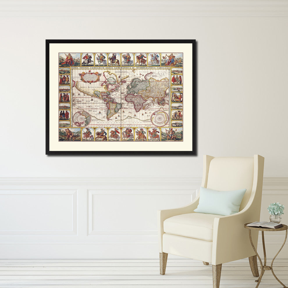 Geographic Vintage Map Print On Canvas With Picture Frame 16" X 21"