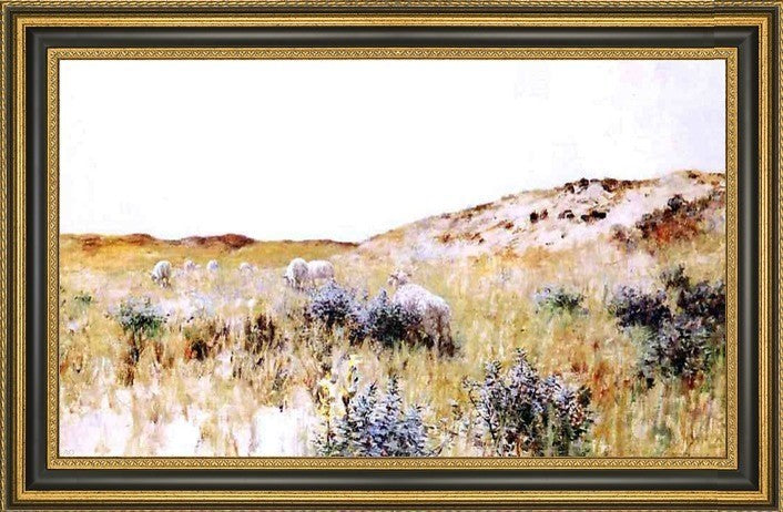 16" x 24" George Hitchcock The Dunes, Holland framed premium canvas print reproduced to meet museum quality standards. Our Museum quality canvas prints are produced using high-precision print technology for a more accurate reproduction printed on high quality canvas with fade-resistant, archival inks. Our progressive business model allows us to offer works of art to you at the best wholesale pricing, significantly less than art gallery prices, affordable to all. This artwork is hand stretched onto wooden stretcher bars, then mounted into our 3 3/4" wide gold finish frame with black panel by one of our expert framers. Our framed canvas print comes with hardware, ready to hang on your wall., We present a comprehensive collection of exceptional canvas art reproductions by George Hitchcock.