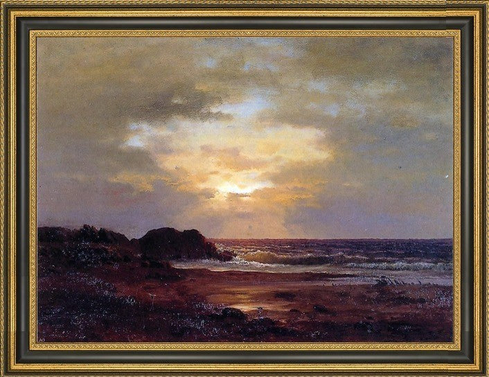 21" x 28" George Inness Coast Scene framed premium canvas print reproduced to meet museum quality standards. Our Museum quality canvas prints are produced using high-precision print technology for a more accurate reproduction printed on high quality canvas with fade-resistant, archival inks. Our progressive business model allows us to offer works of art to you at the best wholesale pricing, significantly less than art gallery prices, affordable to all. This artwork is hand stretched onto wooden stretcher bars, then mounted into our 3 3/4" wide gold finish frame with black panel by one of our expert framers. Our framed canvas print comes with hardware, ready to hang on your wall., We present a comprehensive collection of exceptional canvas art reproductions by George Inness.