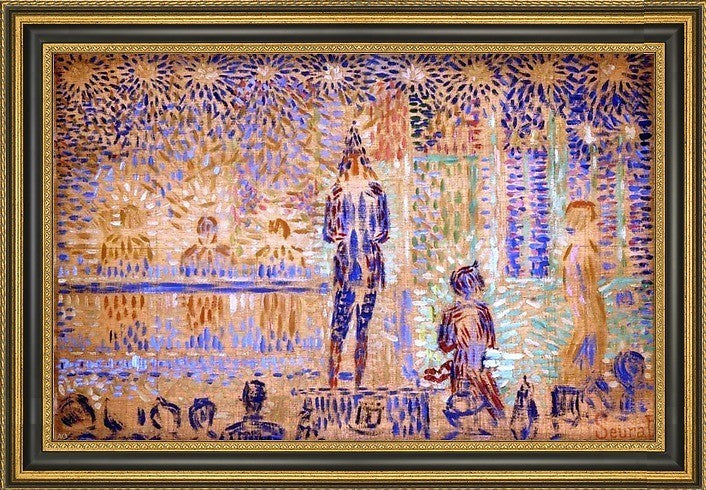 18" x 27" Georges Seurat Study for ''Invitation to the Sideshow'' framed premium canvas print reproduced to meet museum quality standards. Our Museum quality canvas prints are produced using high-precision print technology for a more accurate reproduction printed on high quality canvas with fade-resistant, archival inks. Our progressive business model allows us to offer works of art to you at the best wholesale pricing, significantly less than art gallery prices, affordable to all. This artwork is hand stretched onto wooden stretcher bars, then mounted into our 3 3/4" wide gold finish frame with black panel by one of our expert framers. Our framed canvas print comes with hardware, ready to hang on your wall. We present a comprehensive collection of exceptional canvas art reproductions by Georges Seurat.