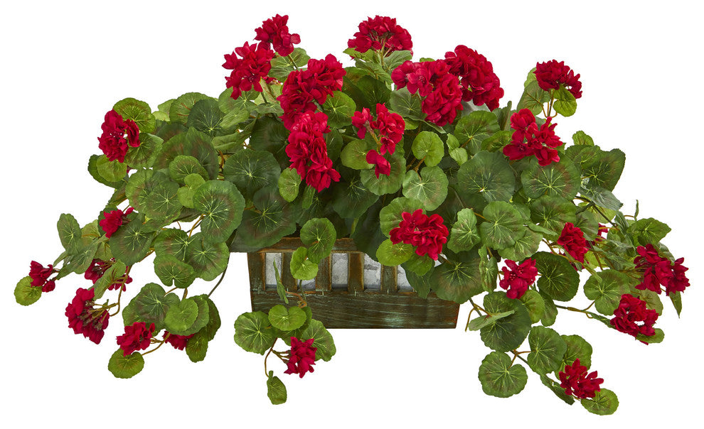 This artificial geranium plant will add drama to your center table, side table, or work desk. The overflowing red blooms and green foliage that drapes down over the included decorative planter will add a nice accent of rich color to your furniture. Since it''s made from the finest materials, this 15-inch artificial geranium plant will stay vibrant all year long alongside other faux plants.