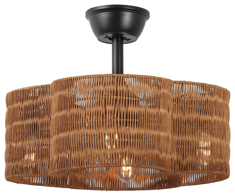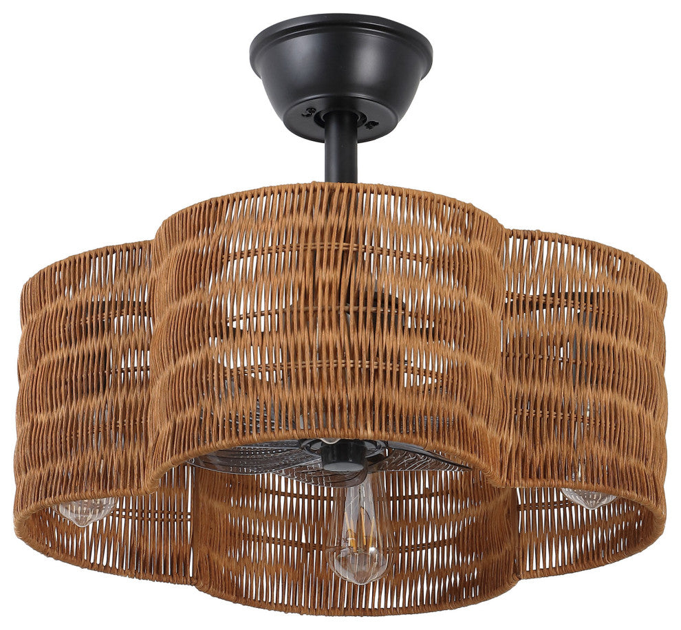 GetLedel 19.7" Scalloped Rattan Ceiling Fan With Remote and Light, Brown