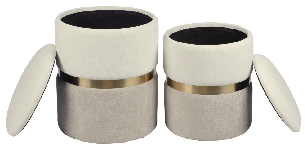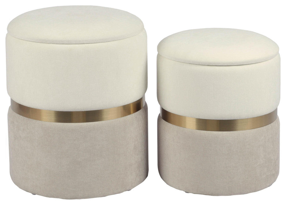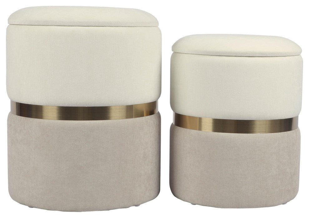 Gigi Cream and Tan Chenille Storage Ottoman, 2-Piece Set