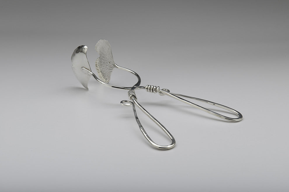 Ginkgo Salad Tongs, Silver