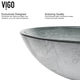 The VG07053 Simply Silver Glass Vessel Sink features a circular pattern of metallic silver tones.