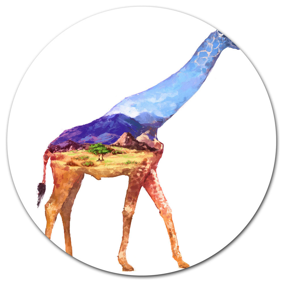 Bring Contemporary Abstraction to your home with this large Circle Metal wall art. This Giraffe Double Exposure Illustration Metal Artwork makes it the focal point of any room or office.