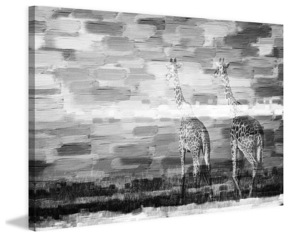 Striking and unique, the "Giraffes" Print on Canvas by Parvez Taj will bring your walls to life. Printed on canvas, this 36 inch wide by 24 inch tall contemporary artwork will make a statement in any living room, dining room, or bedroom.- Fine art canvas print by Parvez Taj- Professionally hand stretched- Gallery wrapped in sustainable, non-warping wood- Arrives ready to hang- Made in the USA- Includes a certificate of authenticity- Artist signature on the front