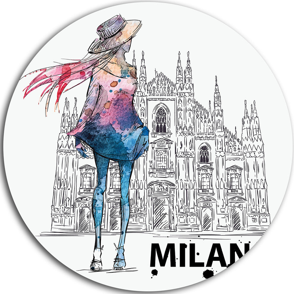Girl On A Milano Duomo, Contemporary Round Wall Art, 36"