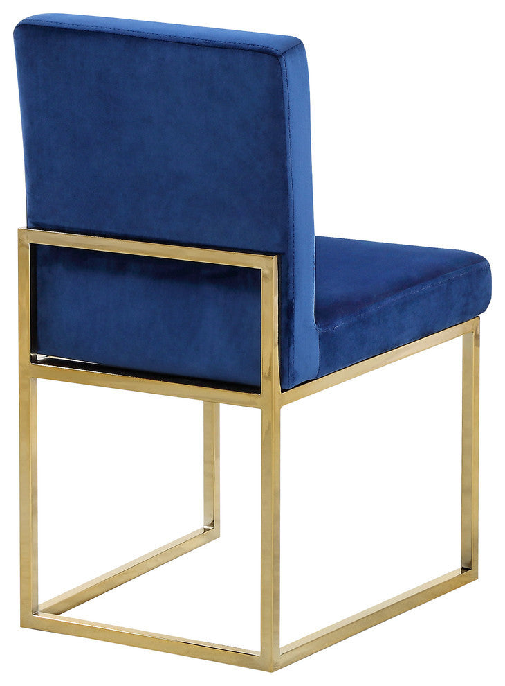 Giselle Velvet Dining Chairs, Set of 2, Navy, Gold Base