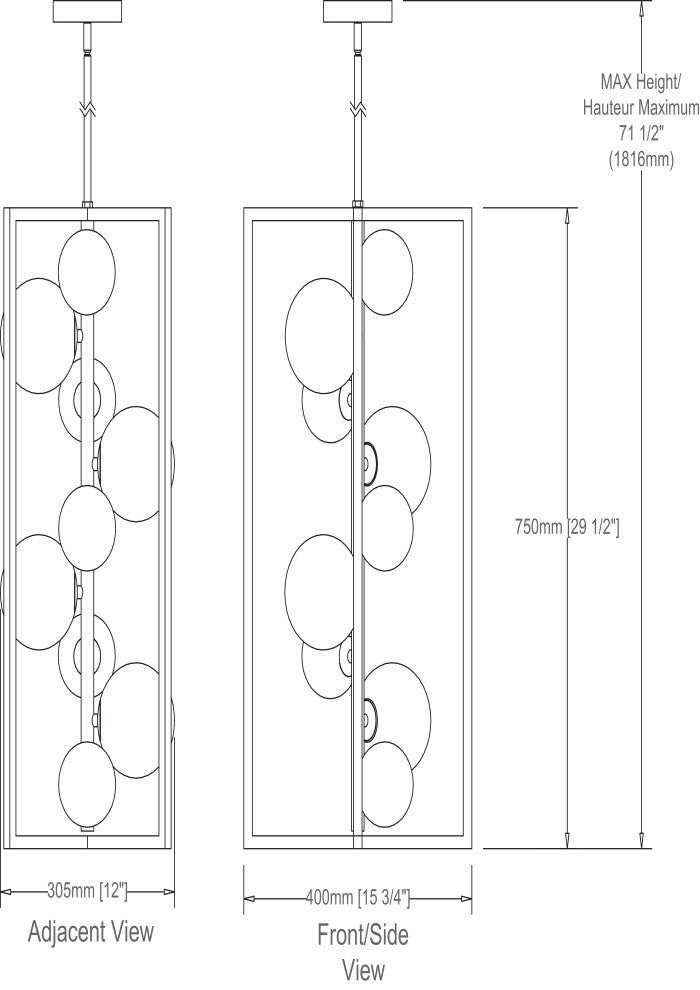 Gladius 9-Light Pendant, Matte Black and Vintage Bronze