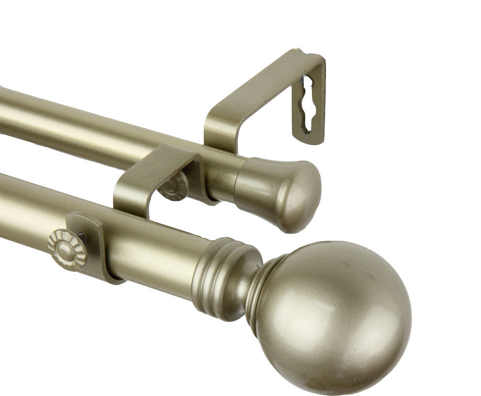 Globe Double Curtain Rod, Light Gold, 66-120"