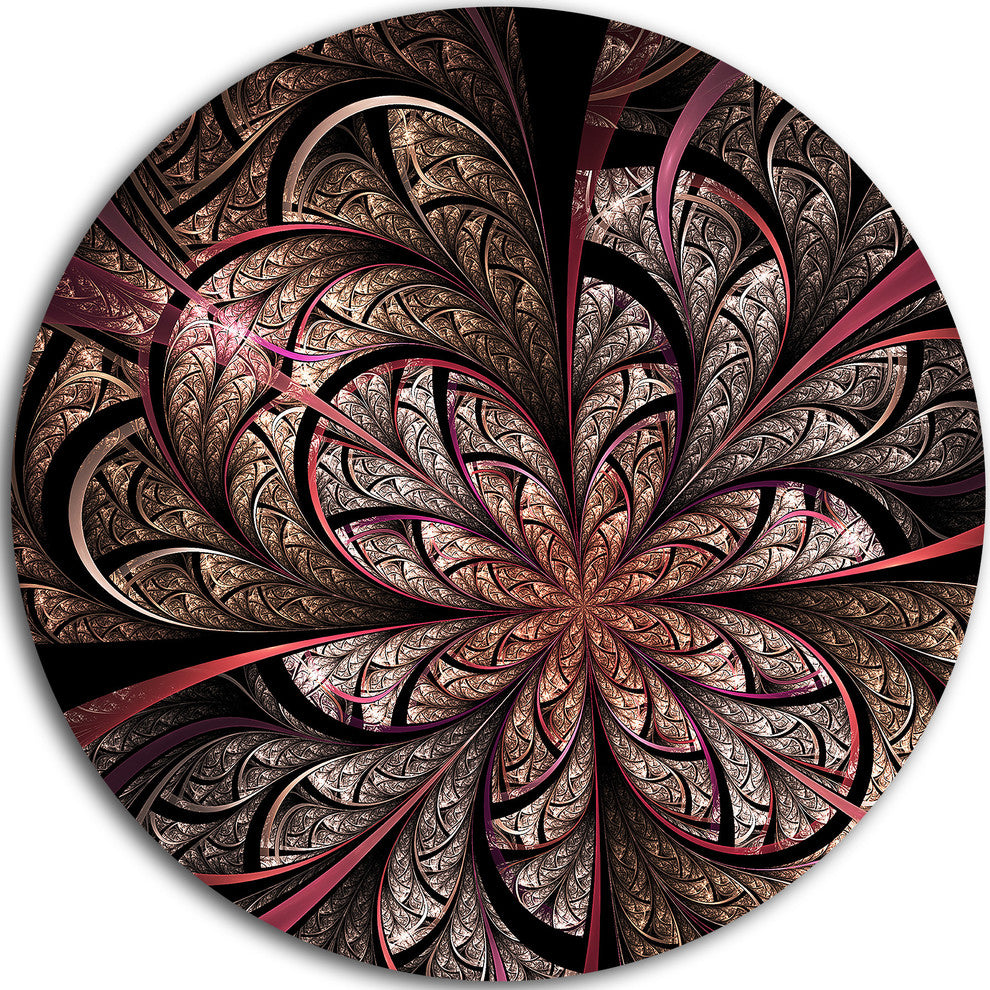 Bring Contemporary Abstraction to your home with this large Circle Metal wall art. This Glowing Large Fractal Flower Design Metal Artwork makes it the focal point of any room or office.