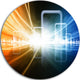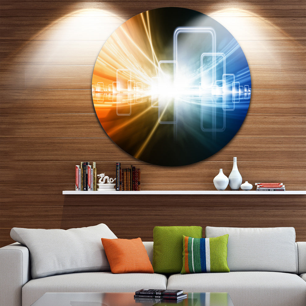 Glowing Squares And Lines, Abstract Digital Round Metal Wall Art, 38"