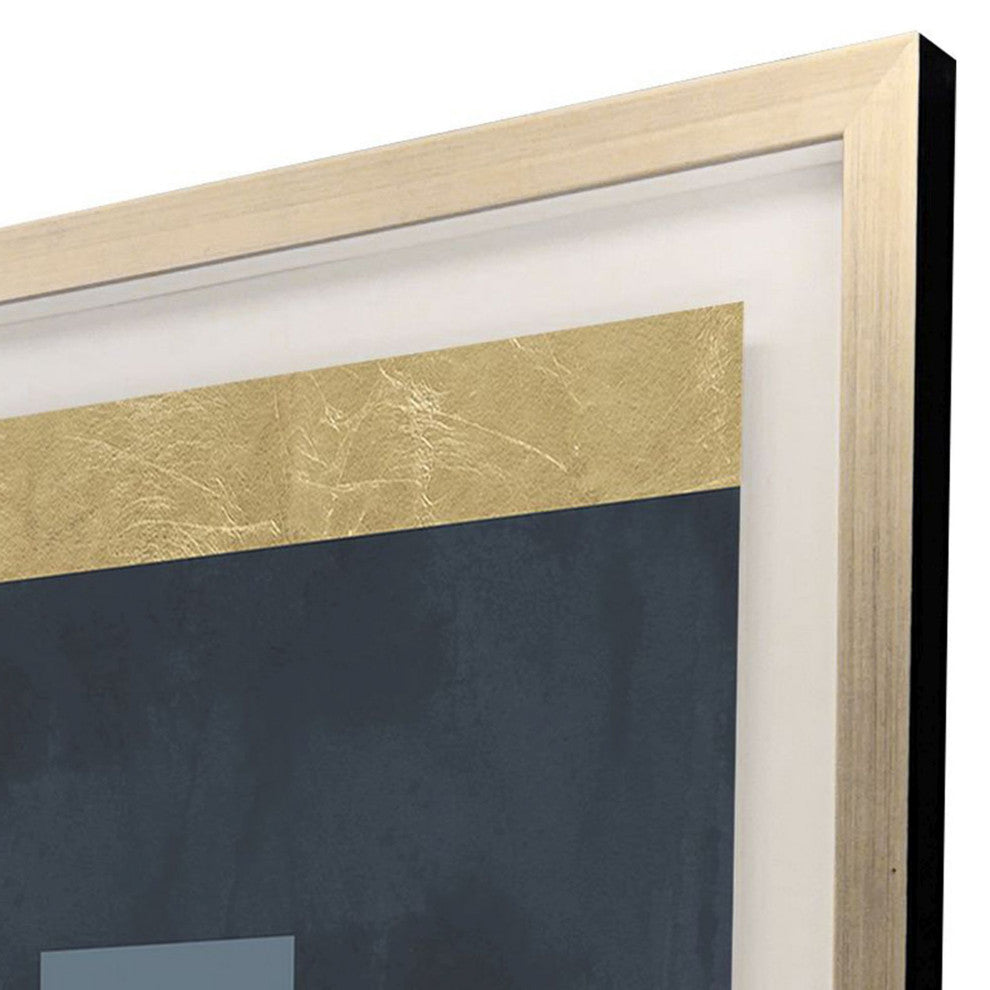Exclusive embellished giclee with hand applied gold leaf. Framed in a modern antique silver leaf wood with champagne gold wash and painted black edge.