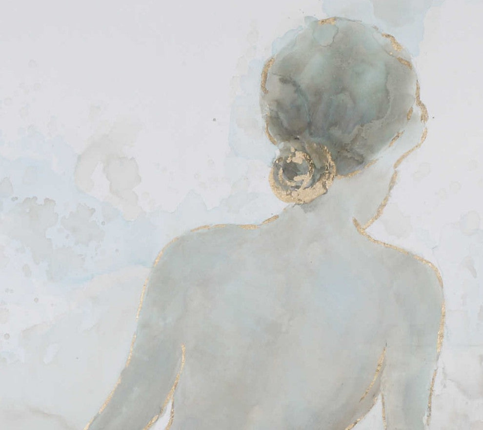 Gold Nude Female Wall Art Painting, Spa Lady Relaxation Square