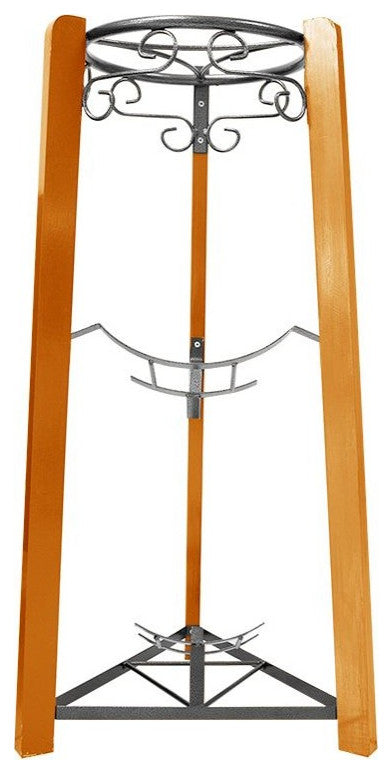 Goldwell Designs patented 3-step floor metal and wood stand is the perfect addition to hold your beautiful round water dispenser and additional water bottles. Perfect for the kitchen or office and organize your spare bottles in the rack below. Approx. 35" inches in height and 14" inches in diameter, it is strong enough to hold your dispenser, 5 gallon bottle of water on top and two full spare 5 gallon bottles on the racks below. Assembly required.