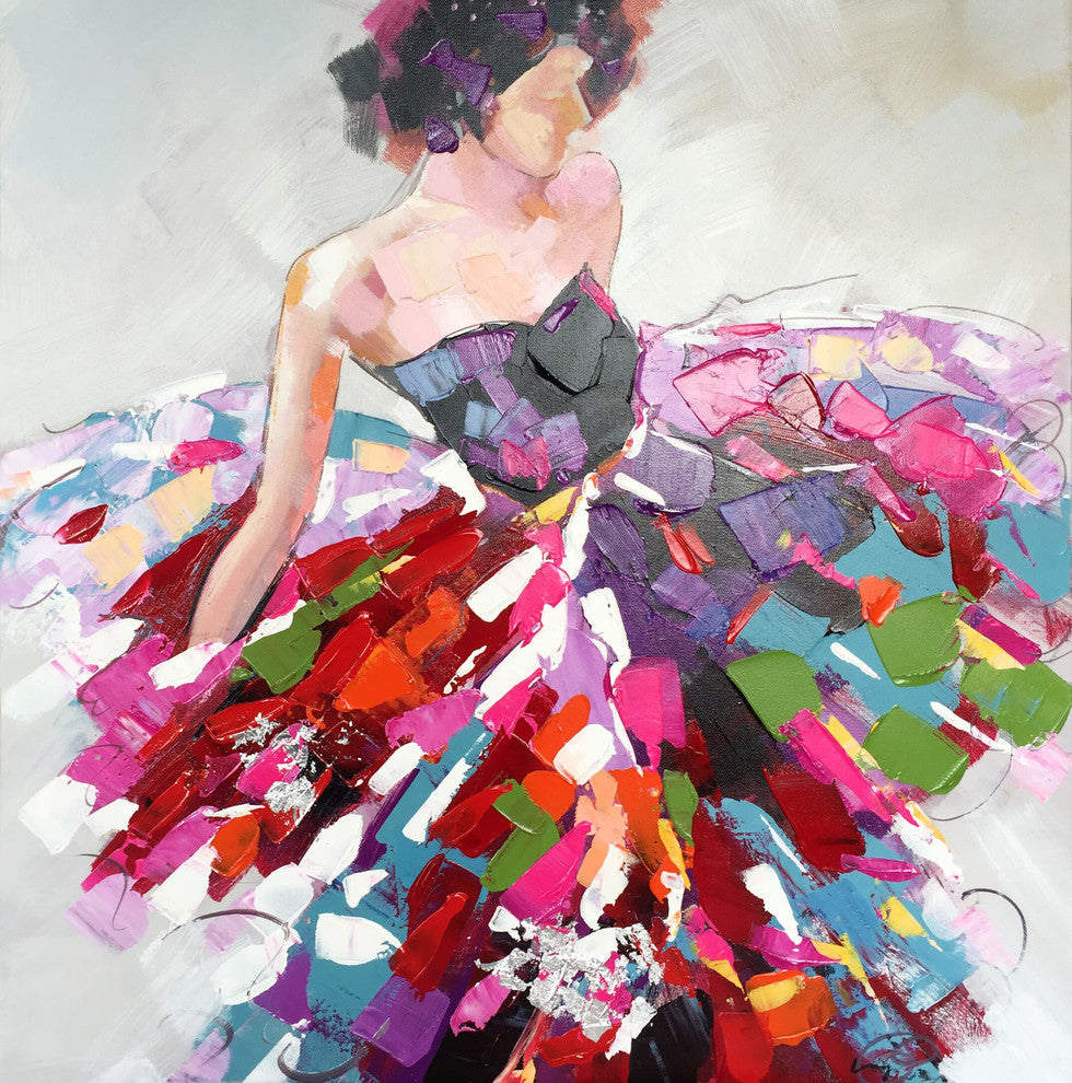 "Graceful Colorful Dress" Hand Painted oil painting, original Art
