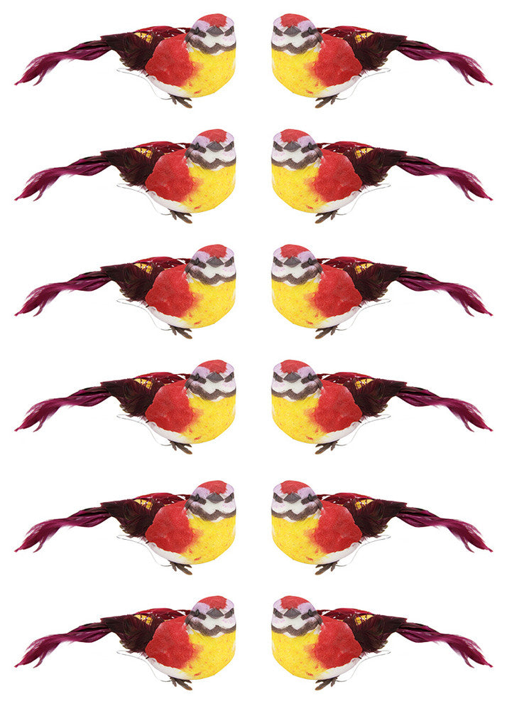 Graceful Elegance Bird Christmas Ornaments, Red and Yellow, Set of 12, 4.75"