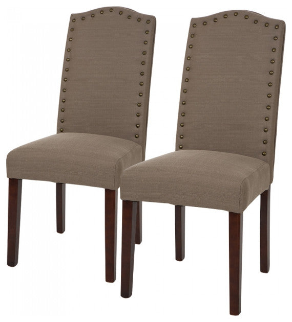 Gray Upholstered Dining Chair With Studs, Set of 2