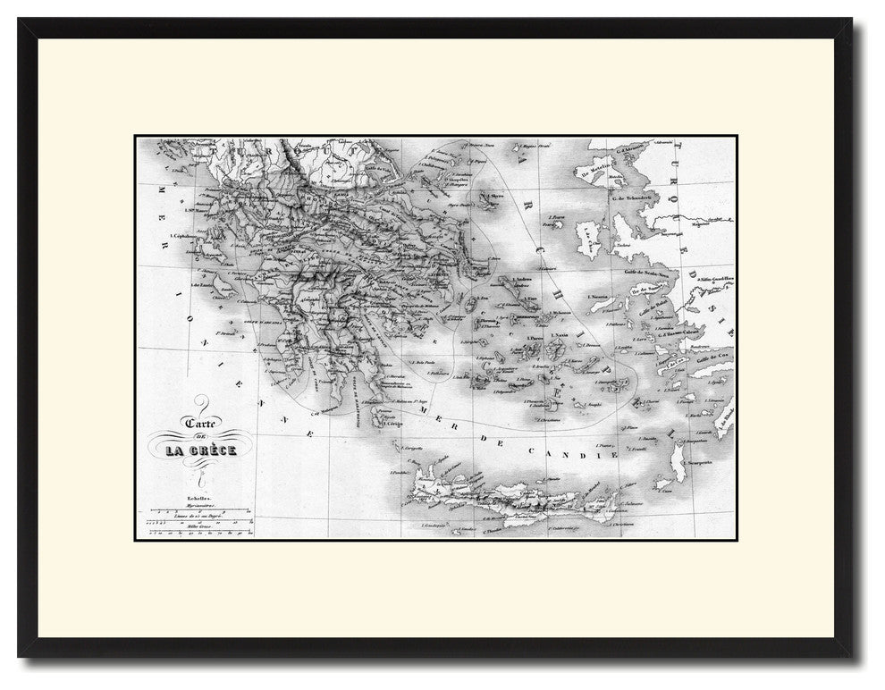 Greece Vintage B&W Map Canvas Print, 16"x21"