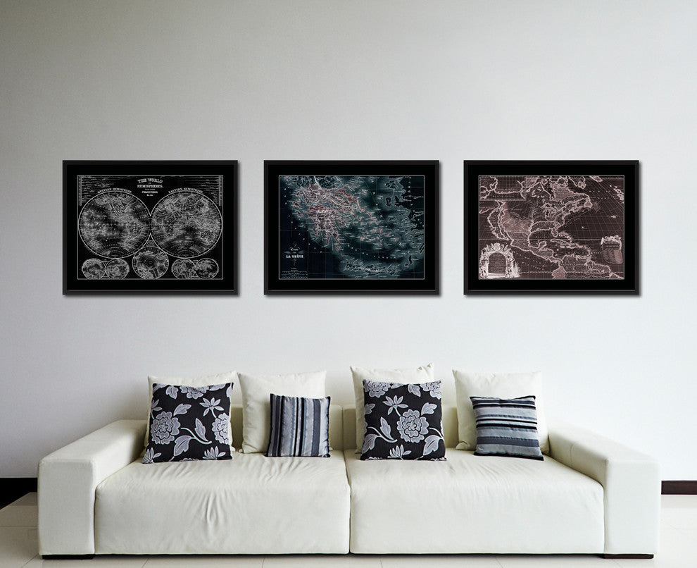 Greece Vintage Vivid Color Map Canvas, 16"x21"