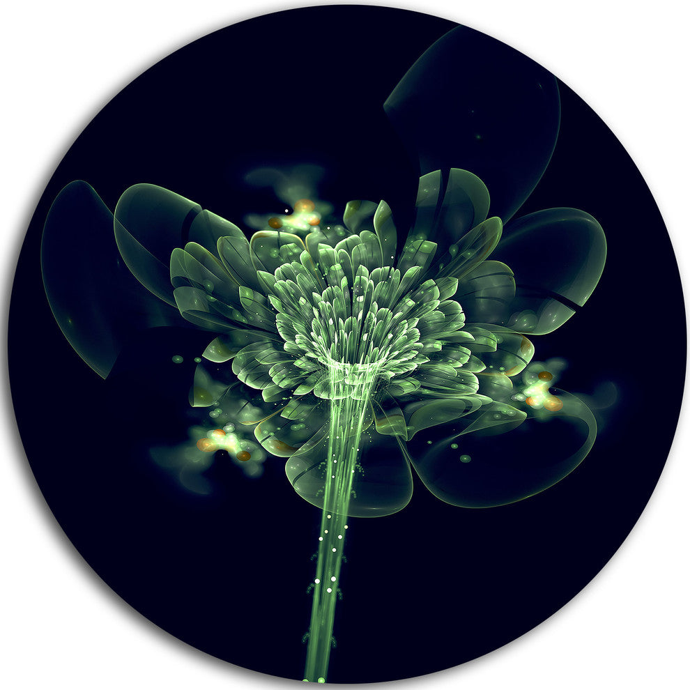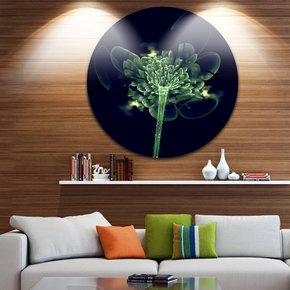 Green Fractal Flower In Air, Floral Digital Round Metal Wall Art, 11"