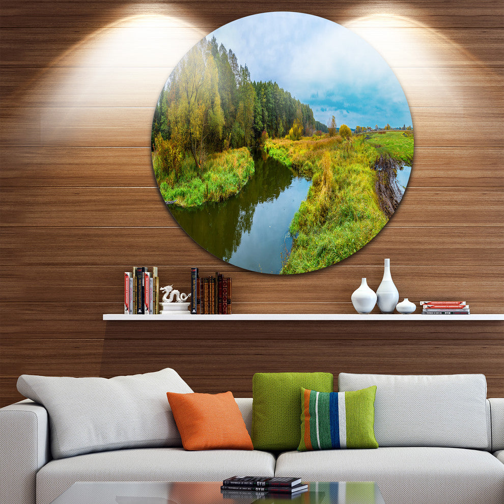 Green Park By The Lake, Landscape Photography Disc Metal Wall Art, 23"