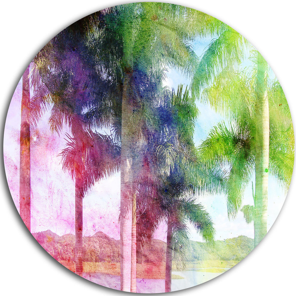 Bring Contemporary Abstraction to your home with this large Circle Metal wall art. This Green Retro Palm Trees Metal Artwork makes it the focal point of any room or office.