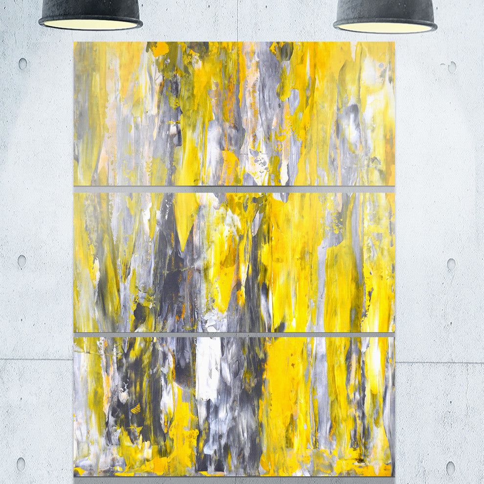 "Grey and Yellow Abstract Pattern" Metal Wall Art, 3 Panels, 28"x36"