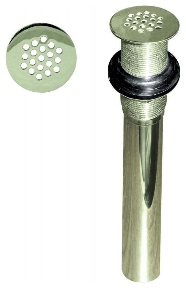 This attractive grid strainer style drain is ideal for most vessel and bars sinks without overflow. Its 19-hole construction and stylish finish make the perfect solution for any decorative bar or vessel sink! Finished top and bottom, the drain is useful for hidden or exposed installations. You''ll be able to appreciate both the beauty and performance of this item for years to come thanks to superior quality finishing and solid construction.
