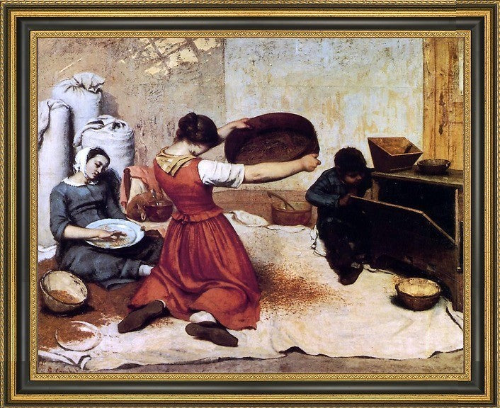 Gustave Courbet The Grain Sifters Framed Premium Canvas Print, 16"x20"