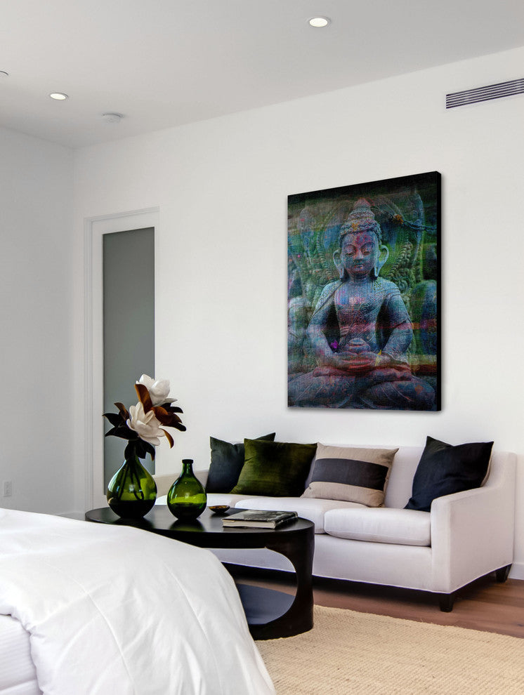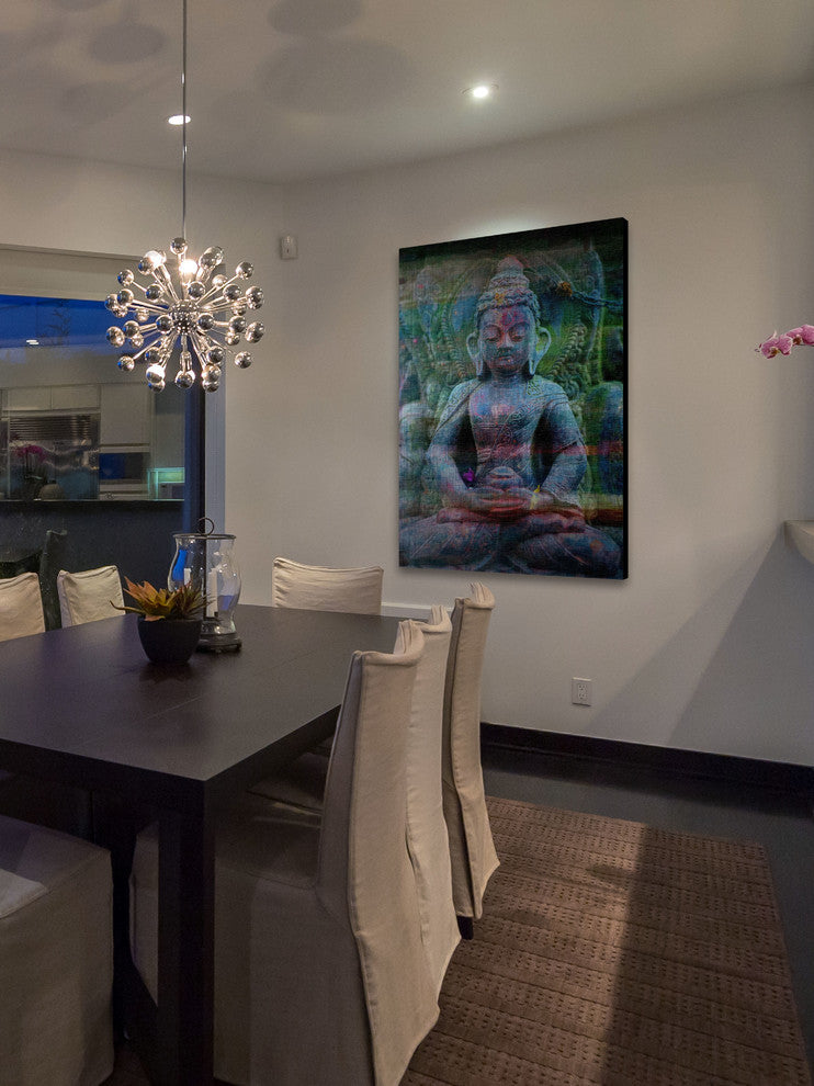 Striking and unique, the "Haldia" UV Ink Print on Brushed Aluminum by Parvez Taj will bring your walls to life. Printed on aluminum, this 30 inch wide by 45 inch tall Asian artwork will make a statement in any living room, dining room, or bedroom.- Fine art UV ink print on brushed aluminum by Parvez Taj- The aluminum pops the colors and creates an iridescent shimmer, which gives depth to a room- Arrives ready to hang - Includes a certificate of authenticity- Artist signature on the front