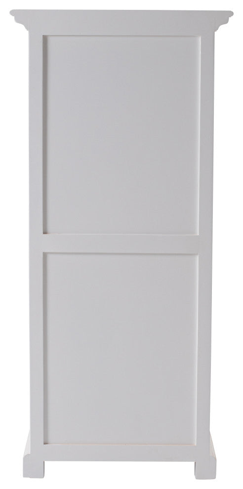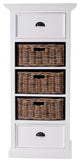 Cleverly designed tower storage units offer good looks and practicality in a charming package. Palm baskets, nestled on shelves, attractively counterpoint the drawers, and echo the look that the Halifax Collection is famous for. Flared molding and antique brass hardware complete the look.