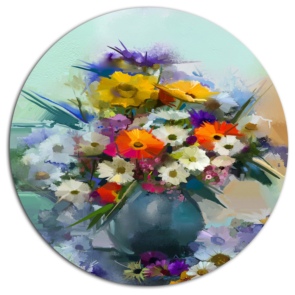 Hand-Painted Bunch Of Small Flowers, Floral Disc Metal Wall Art, 38"