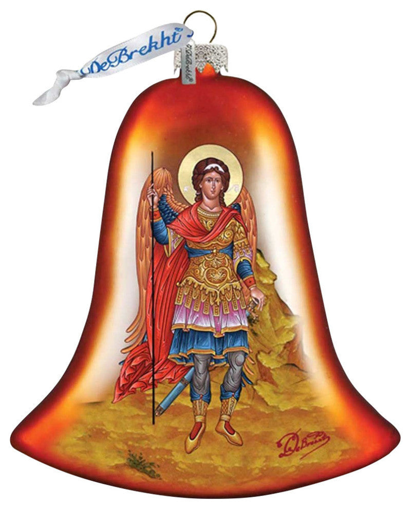 Hand Painted Saint Michael Bell Glass Scenic Ornament