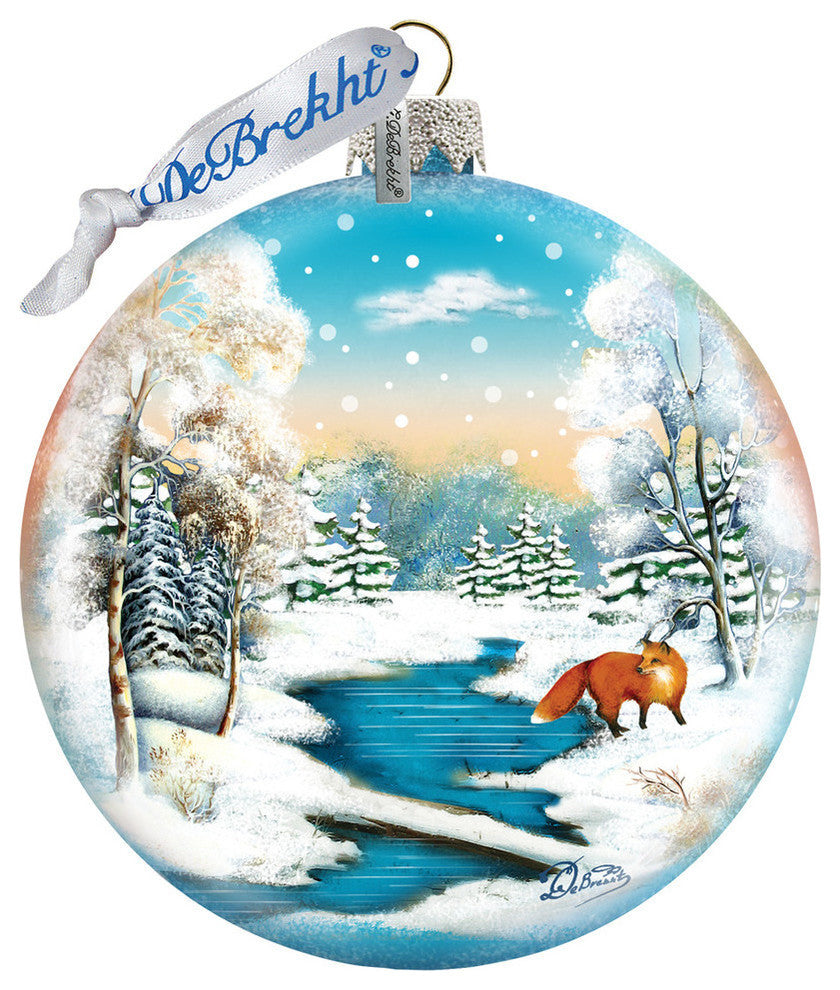 Hand Painted Scenic Glass Ornament Winter Fox Ball
