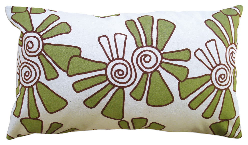 Hand Printed Canvas Pillow - Alex, Moss, 12 x 20
