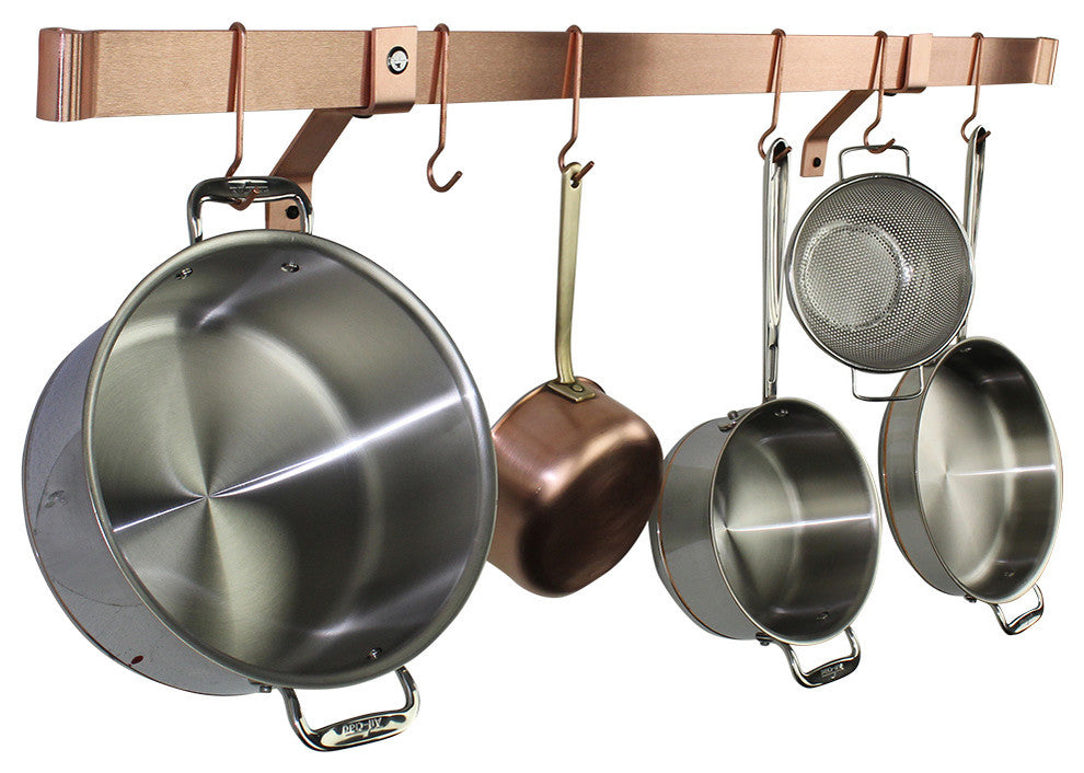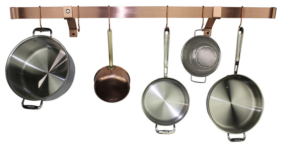 Handcrafted in the USA, this Enclume 48" Rolled End Bar is a classic design used by many culinary professionals. Each Rolled End Bar is forged using traditional French metal working techniques. Real Solid Copper with a Brushed Finish. Used in professional kitchens including many restaurants due to it''s versatility. This item is a Rolled End Bar ONLY. Wall Brackets and Pot Hooks in Images are SOLD SEPARATELY. Hand forged rolled ends keep pot hooks from slipping off. Wall Brackets and Pot Hooks sold separately. Made from Solid Copper, Professional Grade. Forged by our Skilled Craftsmen in the Pacific Northwest, USA. Rolled End Bar ONLY, No Assembly Required. No Hardware Included.