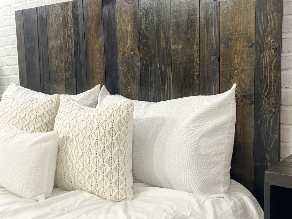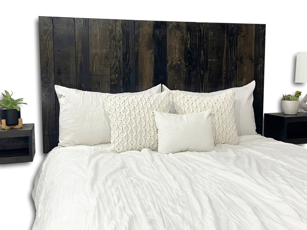 [Leaner Panels] Built with individual panels that are placed side by side and leaned on the wall after they are assembled together. The bed acts as the main support to the headboard, however double sided Velcro strips that stick on the wall are included for additional support. Headboard is very sturdy and will not move or bang against the wall.[Real Wood] A simple and beautiful minimalist handcrafted headboard made with real wood, creating a clean and clutter-free space thats perfect for relaxing and pleasing to the eye and mind. Boards are brushed-stain individually to give them a rustic look. Since it is real wood there will be some natural variations like knots or splits. These aren''t defects, but natural imperfections which add to the charm of your one of a kind table.[Durable & Sturdy Structure] Sealed with polycrylic for durability and watermark resistant. MADE IN GILBERT, ARIZONA.[Natural Wood Color] Black Barrel is an oil based stain. Each board has the tendency to absorb the stain differently therefore the finish may vary from lighter to darker tones of brown.[DIMENSIONS] Number of panels included in this set: 3. Overall Dimensions: Length 64.5" x Width 2" x Height 58".
