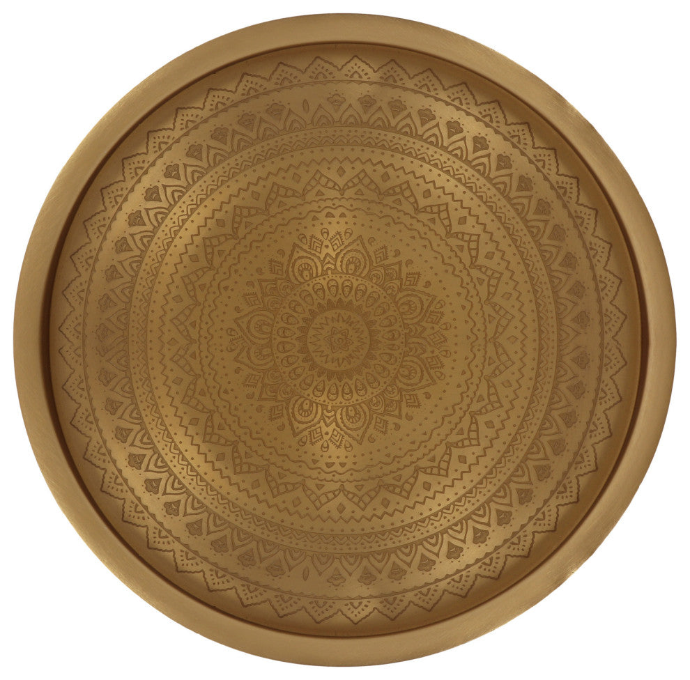 Up your hosting game with a tray top table that will make serving your guests a breeze. This handcrafted table is ideal for any occasion with its desirable mobile feature, making it easy to store and transport. Created for both functionality and impeccable style, this dazzling piece will open up your living space with a flourish. Accented with delicate Moroccan etchings and stunning twisted legs, our table is the perfect breathtaking addition that will have all your guests in awe of your decor. VINTAGE DESIGN: With an intricate Moroccan pattern etched into the tabletop, this tray table is the perfect vintage accessory for your interior space. Finished with a beautifully twisted leg design, this not only offers a minimalistic yet exquisite look but also provides a stable structure. HANDCRAFTED DESIGN: This accessory is expertly designed and handcrafted with artisan expertise. Any natural variations are not product flaws, but rather, will ensure that your purchase is truly a one-of-a-kind product.TRAY TOP: Our accent table features an antique-style tray top that makes it easy for you to transport snacks and drinks throughout several spaces. This offers convenient mobility, making it easy for you to add a perfect touch to any room whenever you need it. FOLDABLE LEGS: Supported by iron legs, this table offers a foldable option that still provides durability to the overall piece. Refined with a gorgeous twisted design, these legs bring a traditional touch to this piece, making it an understated yet elegant addition to your home. DIMENSIONS: Choose an accessory that is the perfect size for you and your furniture. This side table is 15.00" W x 15.00" D x 20.50" H. You will love how much your space can transform with the simple addition of this charming table.Includes: One (1) Side TableMaterial: IronFinish: Gold/Antique CopperHand-Crafted DetailsNo Assembly RequiredDimensions: 15.00 inches deep x 15.00 inches wide x 20.25 inches high