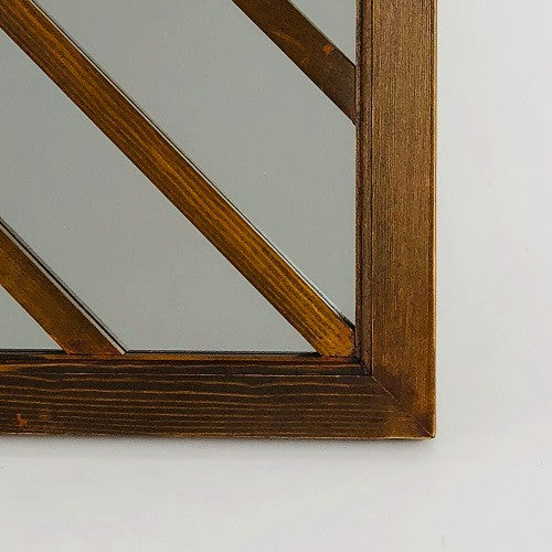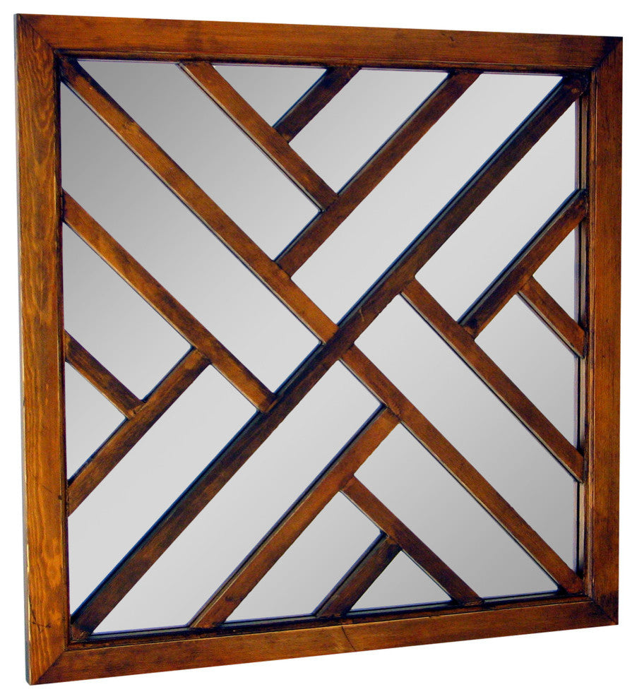 The Happy Decorative Mirror is expertly crafted from pine wood in a cherry finish. Measuring 24 inches by 24 inches, this piece will be sure to make a statement taking up a sizable space on your wall.