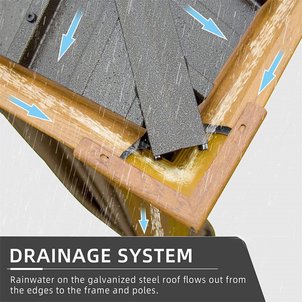 [Water Gutter Design]The unique design of our double roof metal gazebo canopy allows rainwater to flow from the eaves leak to the pole to the ground, reducing the hassle of rain and snow. The unique and targeted design keeps the gazebo in good condition and prolongs its lifespan.